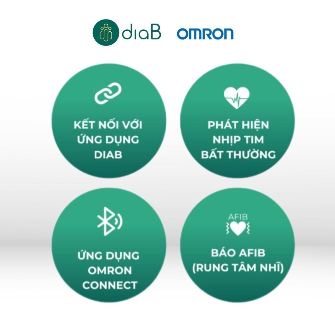 - Chức năng kết nối Bluetooth cho phép theo dõi kết quả đo huyết áp trên điện thoại qua Omron Connect, dễ dàng chia sẻ với bác sĩ.